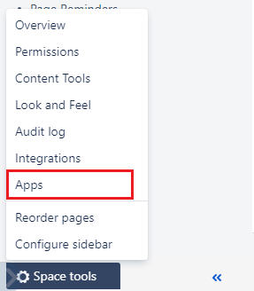 Select the ‘Space Tools’ and then click on ‘Apps’ and select the ‘Page Reminders’ tab.