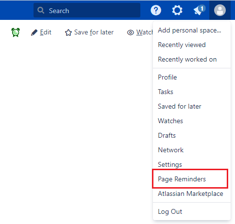 Select the Page Reminder button on any Confluence Page